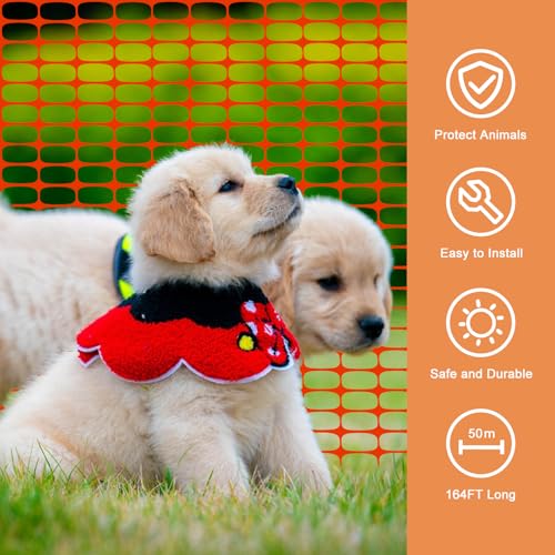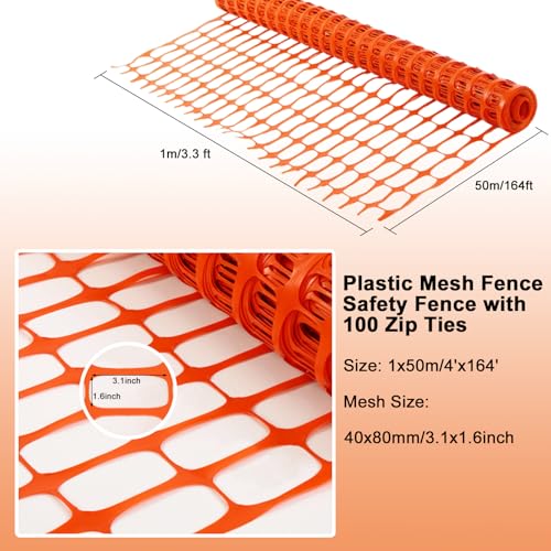 This versatile fencing material can serve multiple purposes such as above-ground barriers, poultry mesh netting, temporary yard fencing, heavy-duty construction safety fencing, and swimming pool barriers. Made from durable, UV-resistant material, it withstands harsh outdoor conditions and ensures longevity. Installation is easy, as the garden fence can be affixed to stakes with zip ties or wrapped around trees for protection. The package includes one 1*50m plastic fence roll and 100 cables for securing it, making it a reusable and sustainable fencing option.