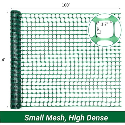 DOEWORKS Safety Fence, 4 x 100 FT Green Plastic Mesh Fence Roll Barrier Netting for Construction Fencing Animal Fencing Garden Fencing and Event Fencing