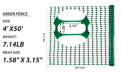 The PotatoLife plastic mesh fence is a versatile and practical fencing solution, perfect for a variety of uses such as garden fencing, animal barriers, poultry netting, and safety zones. Made from UV-resistant plastic, it is both lightweight and strong, with a mesh size of 3.15 x 1.58 inches. Installation is simple; it can be attached to posts or trees and is easy to disassemble and store. The combo set includes a 4′ x 50′ roll, 100 zip ties for secure attachment, and gloves for safe handling. This makes it a convenient choice for both temporary and permanent fencing needs.