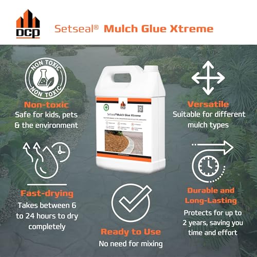 DCP Setseal Mulch Glue Xtreme 32 fl.oz. Concentrate – Gravel Stabilizer & Rock Glue for Landscaping – Binder for Mulch, Pine Straw, Pea Gravel, Pebble – UV Resistant, Fast Drying, Safe for Pets & Kids