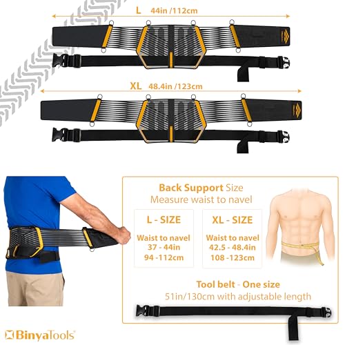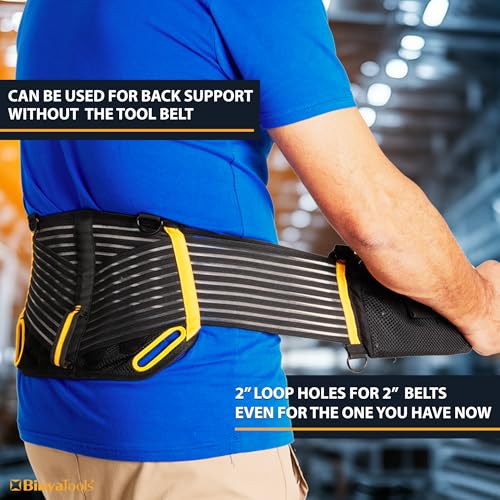 Tool Belt Back Brace Support Lumber Back Brace for Lifting Construction Electrician Tradesman Pro 2″ Tool Belt for Men Orthopedic Ergonomic Lightweight with D Rings for Suspenders – Large