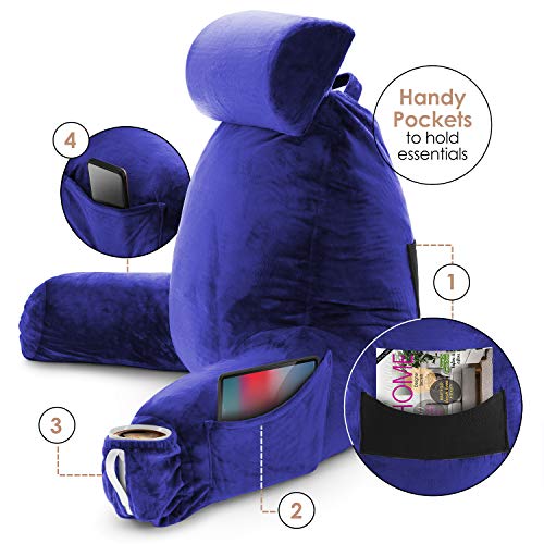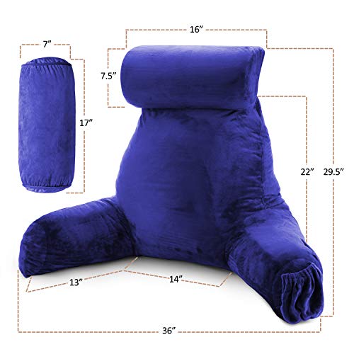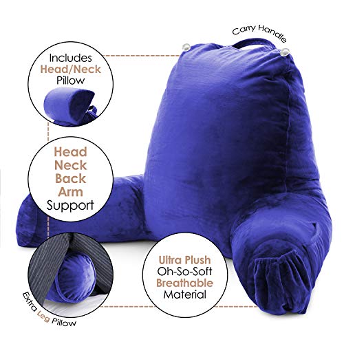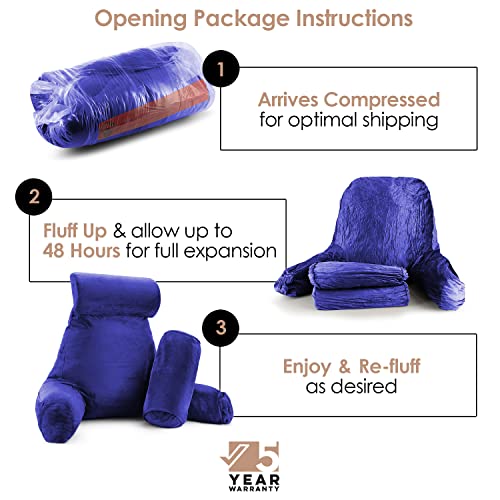 Nestl Reading Pillow with Shredded Memory Foam Includes 2 Neck and Lumber Support Pillows, Designed for Sitting Up in Bed and Couch, Back and Arms Adjustable Support for Adult & Teens, Royal Blue