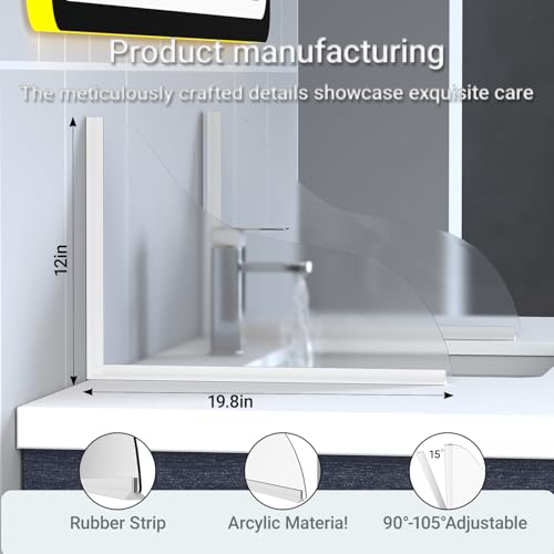 The acrylic tub splash guard is designed to manage water splash, helping keep your bathroom floors dry. Measuring 25cm x 30cm (10 inches x 12 inches), it provides expansive coverage to protect walls from water exposure. The strong adhesive backing ensures a reliable hold on clean surfaces, and the simple peel-and-stick installation requires no tools. With its clear finish, it complements various bathroom decors and can be used not only for bathtubs and showers but also behind sinks.