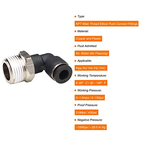 The 1/4″ OD x 1/8″ NPT Thread Push-to-Connect Fittings provide a reliable solution for your plumbing needs. Designed as a Female 90° Degree Elbow, they are made from high-quality plastic and stainless steel, ensuring corrosion resistance and ductility. With a working temperature range from 0-60°C (32-140°F) and working pressure up to 150 psi, these fittings are versatile for air and water applications without freezing. The innovative release ring conforms to an ellipse design, optimizing the disconnecting process while maintaining an excellent seal. Suitable for various piping materials, such as PU, PA, PE, and PVC, these push fittings cater to diverse pneumatic piping requirements.