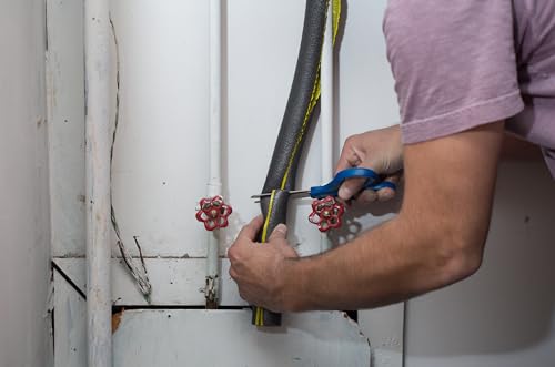 The Duck Brand Insulating Foam Pipe Stick Covers offer effective insulation for both hot and cold water pipes, helping to prevent freezing in winter and sweating in summer. These foam covers are pre-slit for convenient installation, even on curved pipes, and feature self-sealing edges for secure fitting. Each foam stick measures 12 inches in length, with a total of 6 sticks per pack, providing 6 feet of insulation. Suitable for temperatures up to 212°F, this versatile insulation solution is ideal for indoor water, air conditioning, and HVAC pipes, ensuring energy efficiency and protection.