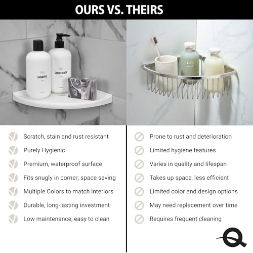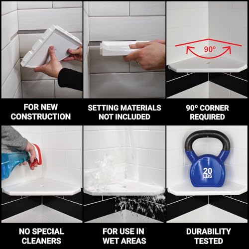This shower corner shelf offers a practical solution for organizing bath essentials while complementing your bathroom decor. The lugged design allows for easy installation into newly tiled walls, ensuring a flush fit. Made from high-quality stone and metal, it is sealed for durability, making it scratch and stain-resistant. Available in multiple sizes (5 inch, 8 inch, and 10 inch), it provides versatility for different bathing spaces, all while maintaining an elegant look that matches your existing fixtures.