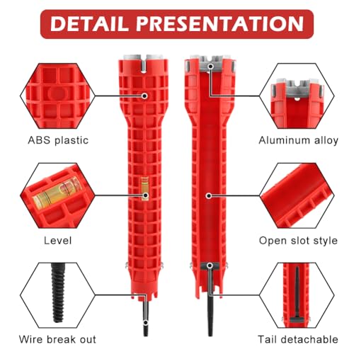Introducing the 14-in-1 Multi-functional Wrench Faucet Sink Installer Tool, perfect for both toilets and kitchens, designed in a vibrant red color. This versatile tool boasts multiple functionalities, making it ideal for various plumbing tasks. Its ergonomic design ensures it is labor-saving and easy to carry, perfect for on-the-go use. However, it’s important to confirm your faucet’s fixing nut type before ordering, as it fits most Type A–D faucet nuts but not all. To avoid a misfit, check the compatibility chart provided in the images before purchasing.