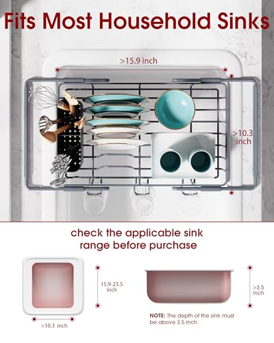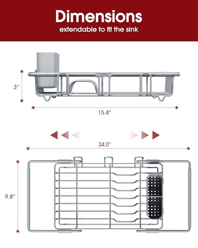 The Sakugi Kitchen Sink Organizer is an innovative solution designed for efficient kitchen space management. It can be used inside the sink for optimal water drainage or adjusted to rest over the sink, making it a versatile drying rack for dishes. Its expandable design accommodates various sink sizes, extending from 15.4″ to 24″. Built with stability in mind, the non-slip rubber covers ensure it remains secure during use. The organizer includes a removable cutlery holder, three cup holders, and ample space for dishes, effectively maximizing storage in small kitchens, apartments, RVs, and dorms.