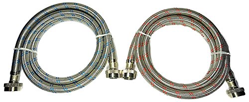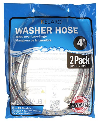 The Stainless Steel Washing Machine Hoses are designed for durability and efficiency, measuring 4 feet long. This pair features color-coded hoses—red for hot water and blue for cold water—ensuring correct installation. They are compatible with all washers, making them ideal for both homeowners and contractors. The burst-proof design, coupled with lead-free materials including Grade 304 stainless steel and brass fittings, provides excellent corrosion resistance. UPC certified, these hoses assure quality for reliable water supply. Whether for new installations or replacements, these hoses promise peace of mind in your laundry setup.