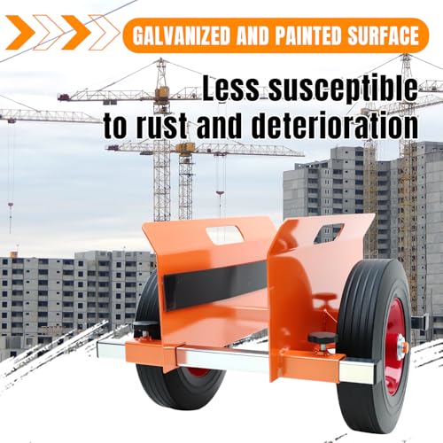 The HEAVY DUTY PANEL DOLLY is constructed from rugged alloy steel, allowing it to easily handle drywall sheets, doors, and slabs weighing up to 1100lbs, making it ideal for demanding construction environments. It features NEVER-FLAT 10″ solid rubber wheels that provide all-terrain shock absorption and ensure smooth movement over various surfaces without the risk of flat tires. The adjustable clamp allows the dolly to adapt to materials up to 9 inches thick, making it versatile for different tasks. This dolly is perfect for effortlessly transporting drywall, doors, and warehouse supplies, significantly reducing the burden of manual lifting.