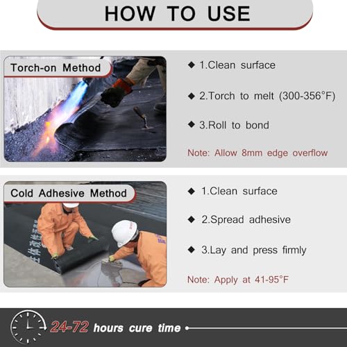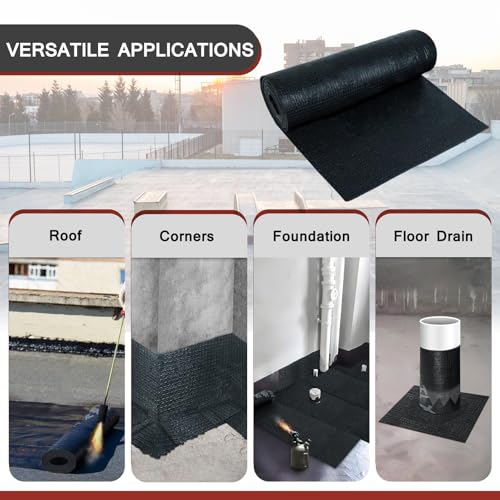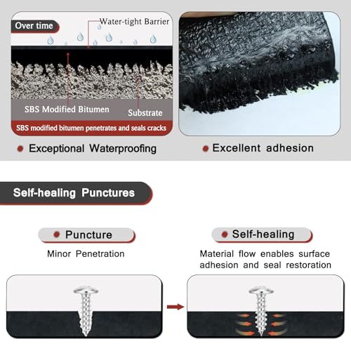 The SBS modified bitumen roofing underlayment is 13 inches x 8.2 feet and weighs 6.83 lbs, offering 8.86 square feet of coverage. It features excellent waterproofing and sealing capabilities, with a self-healing characteristic that maintains its integrity against minor damages. Suitable for all weather conditions, it remains functional in extreme temperatures from -20°C to high heat without cracking. The installation is easy, requiring only a torch for melting or using waterproof glue, making it accessible even for solo application. However, it does have an asphalt odor during installation.