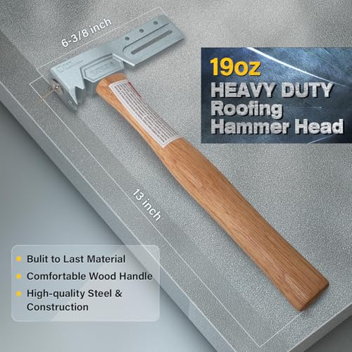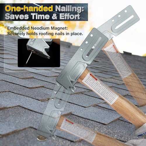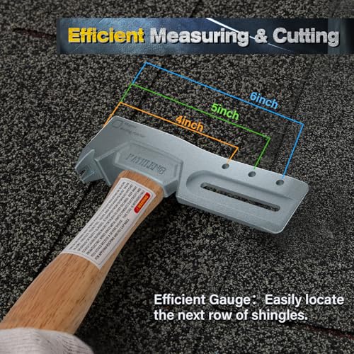 The Magnetic Roofing Hatchet is a time-saving tool designed to simplify the shingle installation process. Featuring a magnetic striking face, it securely holds felt caps or roofing nails, allowing for quick and precise driving. Its all-in-one design includes a sliding gauge, wedge hatchet end, and nail claw, making it versatile for measuring, cutting, and removing shingles. The upgraded wooden handle provides better grip and balance, reducing fatigue during prolonged use. This ergonomic tool is ideal for both professionals and DIY enthusiasts, as it effectively replaces multiple traditional tools, enhancing efficiency and safety.