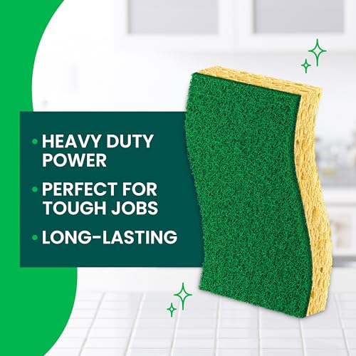 The Scotch-Brite Heavy Duty Scrub Sponges pack includes three high-performance sponges designed for effective cleaning. Featuring 3X more scrubbing power compared to other leading brands, they make tackling tough messes easier. Made from durable materials, they last 3X longer than national value brands, ensuring excellent longevity. Their S-shaped design offers flexibility and a comfortable grip for reaching corners effortlessly, making them a reliable choice for various cleaning tasks.