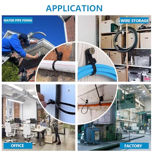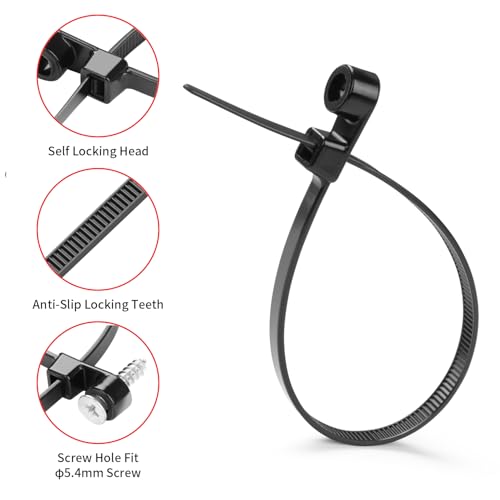 The 12 Inch Long Black Cable Zip Ties come in a pack of 200 and are designed for heavy-duty use with a tensile strength of up to 75 lbs. Made from high-quality nylon 6/6 plastic, they offer good weather resistance and can withstand temperatures between -40°F and 185°F. Each tie features a screw mounting head that includes a 5.4mm screw hole, providing extra security for fastening cables or other items. These zip ties are versatile and suitable for various applications, including home, garden, office, and industrial use, making them an essential tool for organizing and securing cables, wires, and more.