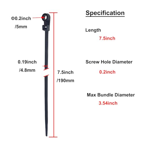 Introducing our Heavy Duty Nylon Cable Ties, designed to provide reliable and secure bundling. Made from high-quality nylon 66 and certified UL 94v-2, these ties are UV resistant and boast an impressive 50 lbs tensile strength, making them perfect for both indoor and outdoor use. Each package contains 100 self-locking zip ties with a convenient mounting hole, measuring 190mm (7.5″) in length and 4.8mm (0.2″) in width. The screw hole diameter is 5mm, accommodating bundles up to 3.54″ in diameter. Moreover, we offer a risk-free guarantee – if you’re not completely satisfied, you can request a refund or replacement. Ideal for any electrical project, these cable ties ensure your organization and safety needs are met with ease.
