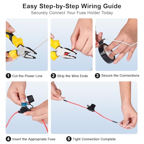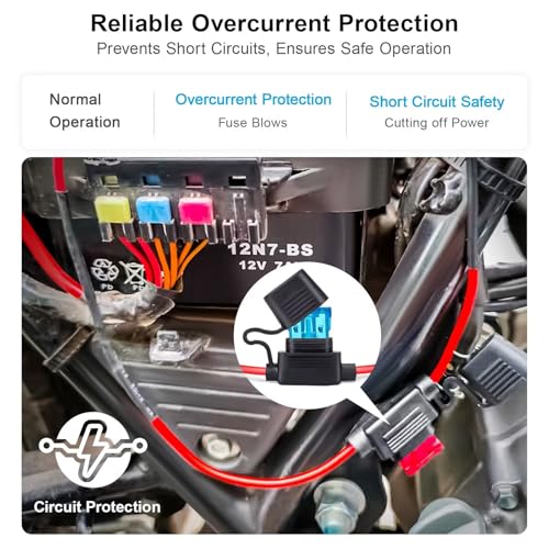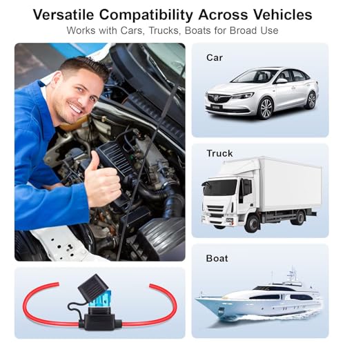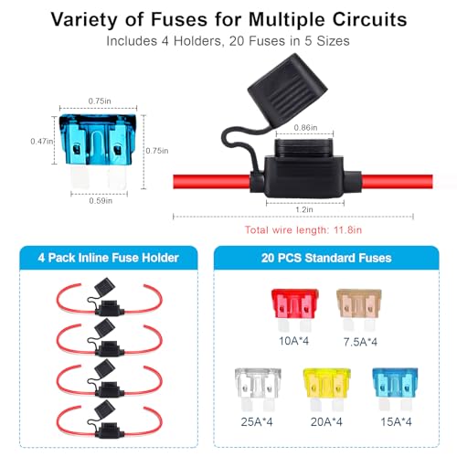 The Marine Grade Tinned Copper Fuse Holder Kit is designed for durability and reliability in harsh environments. Constructed from premium tinned copper wire, these 14AWG electrical holders resist saltwater corrosion and humidity. The convenient 24-piece value kit includes 4 waterproof fuse holders and 20 ATC/ATO blade fuses in varying ratings, making it ideal for most mid-load DIY projects. Built with a rugged weather-resistant design, each holder features a heavy-duty thermoplastic shell and a tight-sealing cap to protect against moisture, vibration, and dirt. Installation is simple and versatile, with a compact design that fits in tight spaces and a user-friendly pigtail wire that allows for an easy, professional setup.