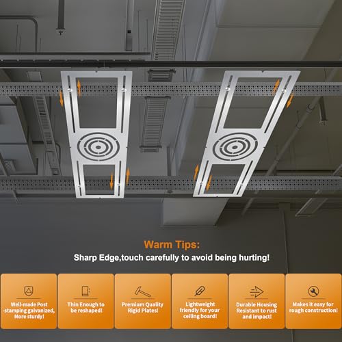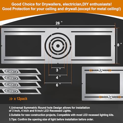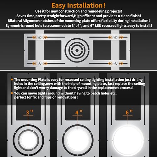 The New Construction Mount Plate for 3 inch, 4 inch, and 6 inch LED recessed lights is made from premium quality galvanized steel, ensuring durability for various structural layouts. Its lightweight and flat design make it a reliable choice for both residential and commercial use. The plate features symmetric round holes for proper fit and alignment, while its multipurpose design accommodates different LED light sizes. This mounting plate is ideal for recessed lighting and can also serve as a ceiling light plate.