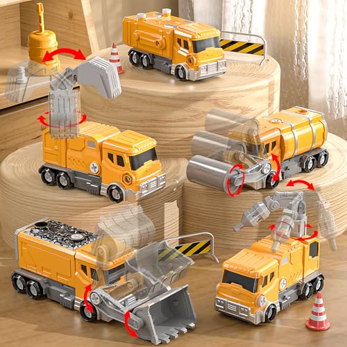 WATUDOU Toys for Ages 5-7, 5-in-1 Take Apart Construction Vehicle Trucks Transform to Robot, 5 6 7 8 Year Old Boy Christmas Birthday Gift Ideas, Robot Toys for Kids 4-8
