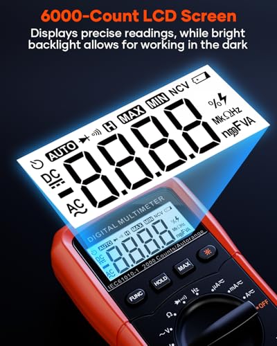 The MS8233D multimeter is a highly versatile tool, capable of measuring multiple electrical parameters including DC/AC voltage and current, resistance, capacitance, frequency, and duty cycle. It also features continuity and diode testing, live wire detection, and non-contact voltage testing with audible and visual alerts. Adhering to strict safety standards, it includes two built-in fuses for overload protection and an insulated rubber holster to protect users from electric shock. The 6000-count LCD display provides clear readings, enhanced by a bright backlight for low-light environments, making this multimeter a reliable choice for both amateurs and professionals.