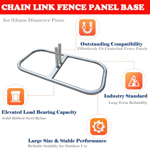 The Chain Link Fencing Base is engineered for superior compatibility, easily fitting 32mm diameter steel posts without needing extra accessories. It boasts an enhanced load-bearing capacity with a 35×18-inch base, preventing tipping even in windy conditions. Constructed with reinforced ribbed steel core posts, it guarantees stability and longevity. Additionally, it allows for easy multi-unit connection, providing customizable stability when combined with sandbags for added support.