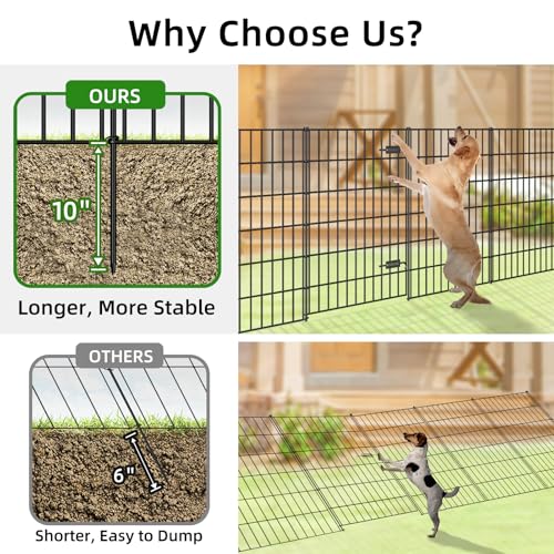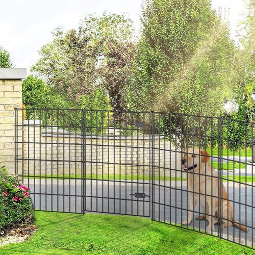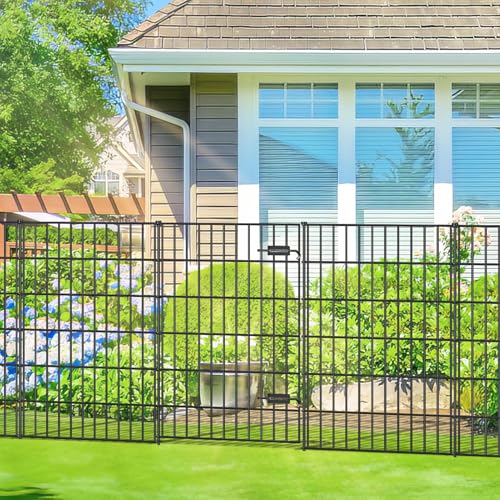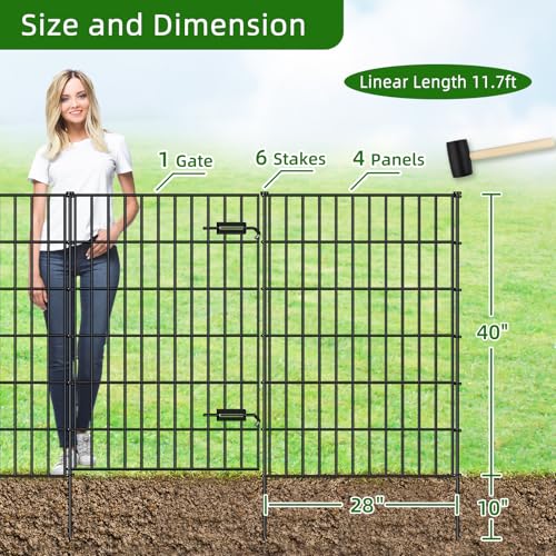 The FOREHOGAR fencing bundle includes one gate and four fence panels, along with six stakes, providing a total linear length of 11.7 feet. Each gate measures 39″ (H) x 28″ (W) and each fence panel measures 40″ (H) x 28″ (W). Installation is simplified with just a rubber mallet needed to secure the panels using metal loops and stakes. Crafted from durable Gauge 9 iron wires, the robust stakes offer excellent stability even when extended into the ground, making it a reliable choice for garden borders or for medium to large dogs. This flexible enclosure allows easy configuration of protective barriers for flower beds or planters.
