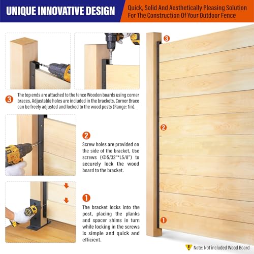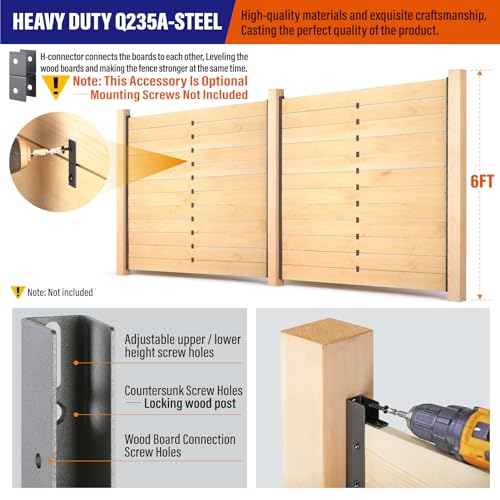 The innovative wooden fence panel posts feature a unique U-channel design that allows for straightforward DIY installation. Heavy-duty steel construction, made from premium Q235 steel with a matte black powder-coated finish, ensures durability and a modern aesthetic. These no-dig panel fence posts resist water and rust, making them suitable for various outdoor conditions. Designed for standard 3/4″ x 5.5″ wood boards (not included), the size of the posts is L1.25″xW0.75″xH68″ and come in a quantity of 8, allowing customization for stylish fence designs. Additionally, the Prinfort team offers excellent customer support for any inquiries.