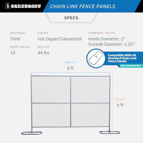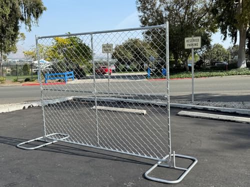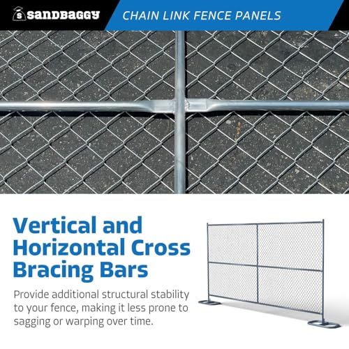 The Instant Temporary Construction Barrier is a robust chain link fence solution, perfect for creating a sturdy and reliable temporary safety barrier in just minutes. Measuring 6 ft tall and 8 ft wide, it is compatible with all standard fence stands (sold separately). This fence features vertical and horizontal cross bracing bars, enhancing its structural stability and minimizing sagging and warping. Constructed with heavy-duty 12-gauge steel mesh, it offers exceptional longevity and resilience against various weather conditions, making it an ideal choice for construction sites, concerts, and special events.