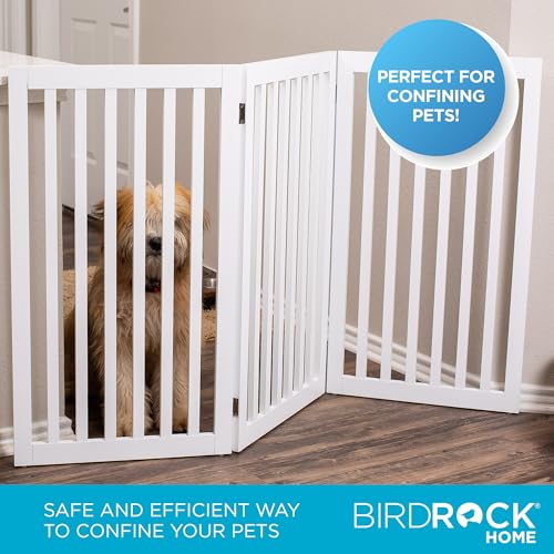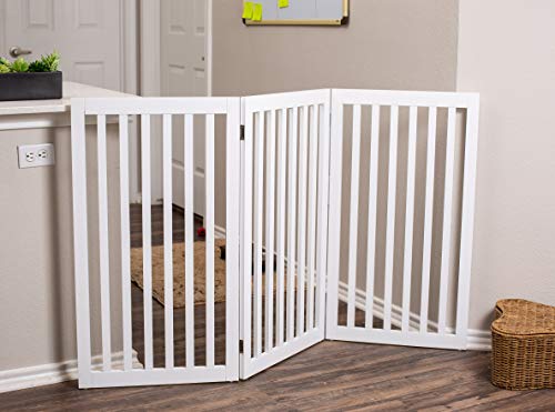 The SECURE AND STYLISH PET BARRIER is an ideal solution for pet owners looking to keep their furry friends safe while enhancing their home decor. This free-standing wooden dog gate features a foldable, 3-panel design that can be easily configured into a Z-shape or stored away when not in use. Measuring 60 inches wide when open and 20.5 inches when collapsed, it weighs 22 lbs, making it both lightweight and easy to maneuver. Constructed from durable MDF, it provides a reliable barrier for dogs, cats, and smaller animals. INTERNET’S BEST prioritizes both style and functionality, resulting in a pet gate that meets the needs of pet lovers.