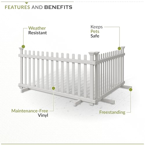 The Portable Dog Fence is an ideal solution for pet owners looking to create boundaries for their furry friends without the need for complicated installations. This lightweight, freestanding picket vinyl fence assembles in approximately 30 minutes and weighs around 12lbs, making it easy to move and set up in various locations. It’s perfect for indoor and outdoor use, effectively protecting spaces such as doorways, porches, and patios from pets, while also serving as a charming display fence for Christmas trees and holiday decorations. However, it’s important to note that it is not recommended for large dogs, and it is best suited for smaller pets.