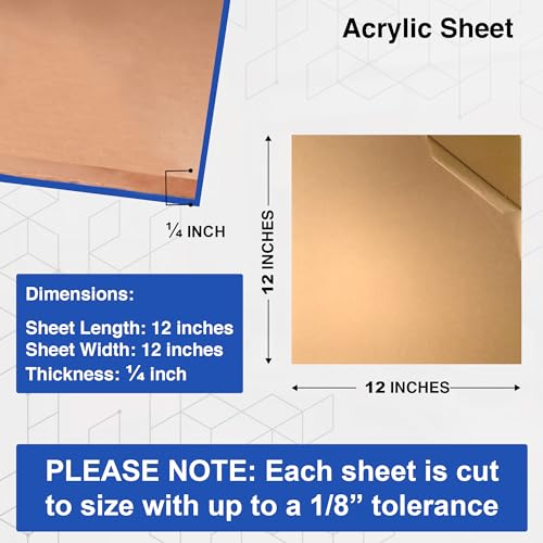 Duco’s 1/4 inch acrylic sheets are manufactured in the USA, providing exceptional optical clarity and UV resistance for long-lasting durability. These sheets are lightweight, shatter-resistant, and offer the same transparency as glass while being easier to handle. Each sheet measures 12″ x 12″ and includes a protective film to prevent scratches. Additionally, they are easy to cut or drill, making them ideal for various projects.