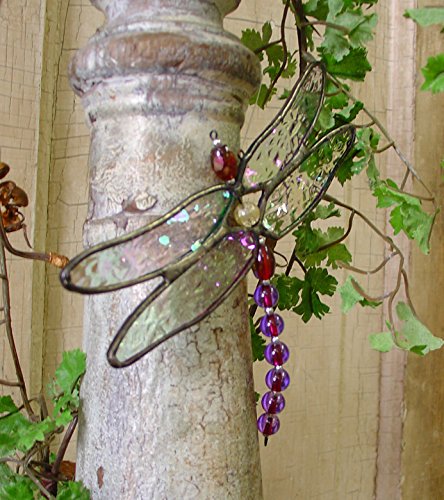 This beautiful stained glass dragonfly ornament features iridescent clear textured glass wings and a beaded body, creating a shimmering and elegant effect. Crafted using traditional stained glass techniques with lead-free solder, it ensures both quality and environmental responsibility. Designed for easy display, it comes with a nylon string and suction cup, making it perfect for any window or as a decorative ornament.