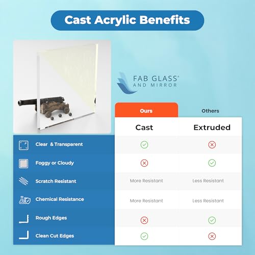 The Fab Glass and Mirror acrylic sheet offers remarkable quality, featuring high optical clarity and precise edge cutting, which creates an ultra-clear finish. It’s a cost-effective, durable, and impact-resistant alternative to traditional glass, suitable for various applications, including crafting, signage, and décor. Its versatility allows it to be used for photo frames, display boards, and even as a tabletop. Each piece is custom made to ensure an excellent user experience, making it a smart choice for both residential and commercial projects.