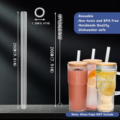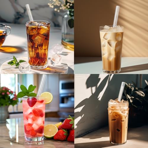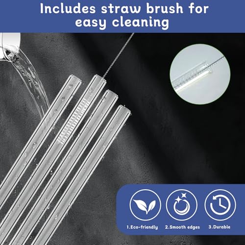 Introducing the 4-Piece Glass Straw Set, featuring four durable straight straws, each measuring 9.8 inches in length and 0.47 inches in diameter, providing a comfortable drinking experience. Made of thick, transparent glass, these straws are safe, stylish, and won’t impact your drink’s taste. With smooth edges, they ensure a pleasant sip without risking lip scratches. Included is a cleaning brush, allowing for quick maintenance, or enjoy hassle-free cleaning by placing them in the dishwasher. This set is an eco-friendly alternative to plastic straws, making it perfect for everyday use.