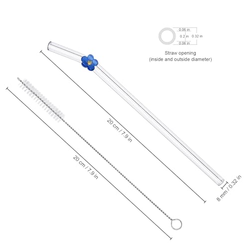 The glass straws set includes 6 straws and 2 long-handled cleaning brushes, each measuring 20CM in length and 8MM in diameter. These reusable straws, made from high borosilicate glass, are BPA-free, heat resistant, and feature a smooth surface for comfortable use. The clear glass design allows easy visibility for cleaning, either in the dishwasher or manually using the brushes. With charming designs, these straws not only enhance your drinking experience but also promote environmental sustainability. Customer satisfaction is prioritized, with support readily available through Amazon for any inquiries regarding the product.