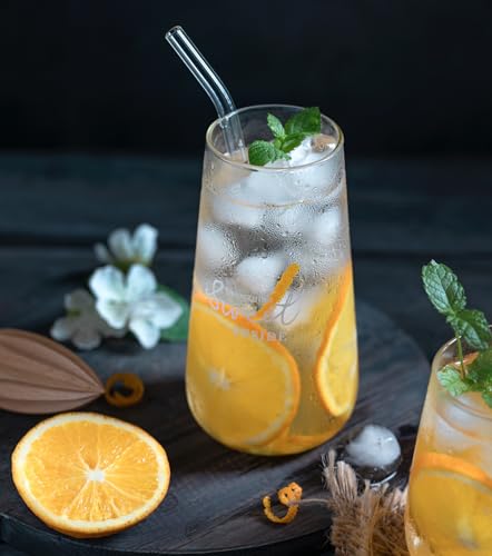 The set includes 6 straight glass straws, 6 bent glass straws, and 4 cleaning brushes, each measuring 8.5″ (215mm) in length. Made from food-grade high borosilicate glass, these straws are lead and BPA-free, offering high strength and excellent transparency. They are ideal for various drinks like smoothies, milkshakes, juice, and cocktails, fitting perfectly in mason jars and tumblers. While they are durable, the straws can break if dropped. The manufacturer guarantees satisfaction and encourages customers to reach out for any issues within 24 hours.