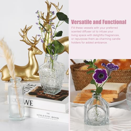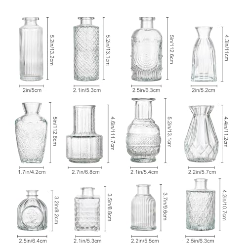 Introducing the exquisite Glass Bud Vase Set of 12 Pcs, perfect for adding vintage elegance to any space. Each vase is intricately designed with delicate etched patterns, made from thick and sturdy glass that showcases the beauty of flowers beautifully. Ideal for various occasions, this set arrives securely packaged and makes a wonderful gift.