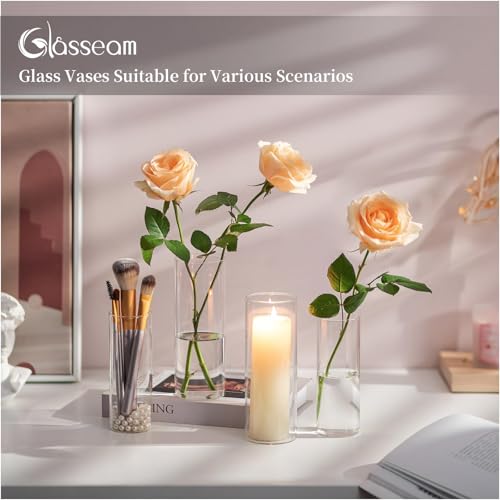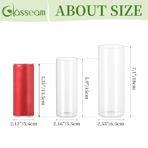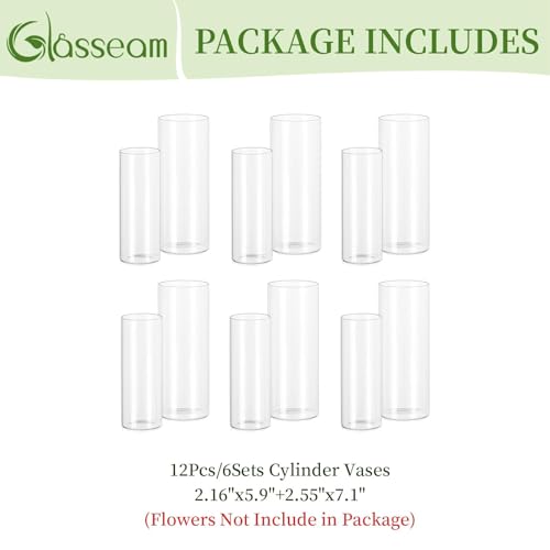 Discover the versatility of the Glasseam bulk cylinder flower vases set, which includes 12 elegant vases in two sizes (2.1″x5.9″ and 2.5″x7.1″). Ideal for both simple single stem arrangements and elaborate floral designs, these vases blend seamlessly into any décor style, from modern to vintage. They function well as hurricane bud vases for small flowers and can also showcase candles, gems, or pens. Perfect for special occasions like weddings, holidays, or housewarming gifts, these clear vases enhance any setting, whether it’s a home or an event. Backed by Glasseam’s commitment to quality, your satisfaction is guaranteed with every purchase.
