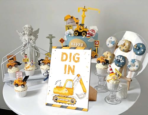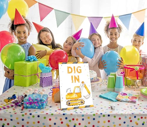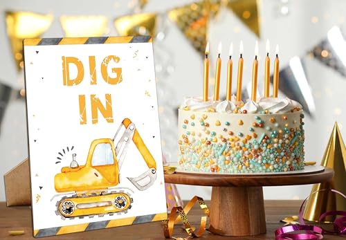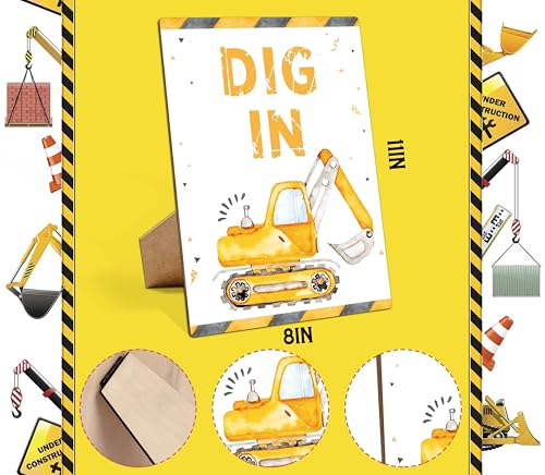 Muruseni Construction Birthday Party Sign, 8×11 inches, Wooden Tabletop Sign with Stand, Dig In, Perfect for Construction-themed Birthday Parties