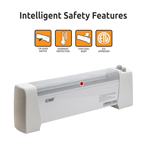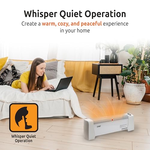 The 1500 Watt convection baseboard heater is an efficient and versatile heating solution ideal for medium-sized rooms. With adjustable thermostat settings and two heat options, it enables tailored comfort. Safety features like a tip-over switch and overheat protection ensure peace of mind. Its whisper-quiet operation makes it perfect for any setting, allowing you to enjoy warmth without distractions. Additionally, this cost-efficient heater focuses on localized heating, helping manage energy costs effectively. Overall, it combines safety, performance, and affordability, making it an excellent choice for your heating needs.