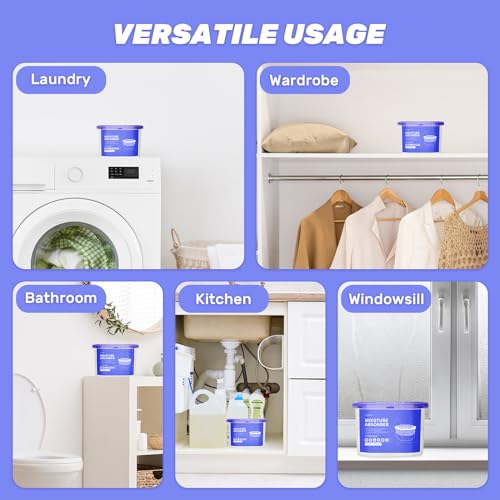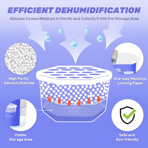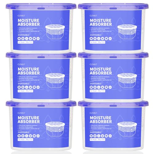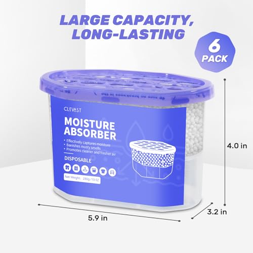 The CLEVAST dehumidifier boxes utilize spherical calcium chloride particles for effective moisture absorption, ensuring your space remains dry and odor-free. Each box is easy to use and store, requiring no assembly. You can monitor the dehumidification process through accumulated water, with a capacity of 280g per box. Designed for different humidity levels, these moisture eliminators can last from 5 to 25 days depending on conditions. Ideal for closets, basements, and damp areas, this product offers a straightforward solution to excess moisture.