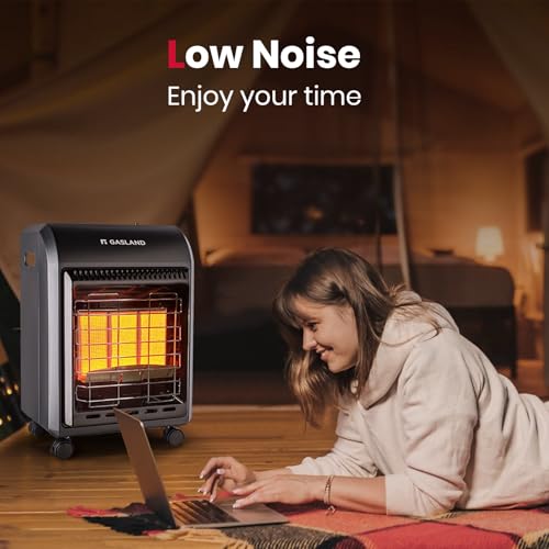 The Gasland Portable Cabinet Heater is a safe and reliable gas heater designed for efficient heating in various environments. It features Tip-Over and Low Oxygen Shut-off for enhanced safety and operates without electricity, making it ideal during power outages. This compact heater has a mobile design with built-in wheels and an Easy-Carry handle for easy transportation, and the propane tank is concealed for aesthetic appeal. Its quiet operation makes it suitable for diverse settings such as garages, offices, and outdoor events, while also helping to reduce electricity bills.