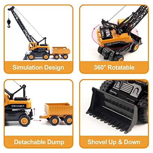 Jenilily Crane Toy Construction Vehicles Model Car, Toy Truck Gifts for Kids Boys Toddler 3 4 5 Years Old