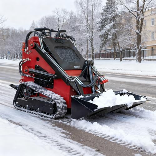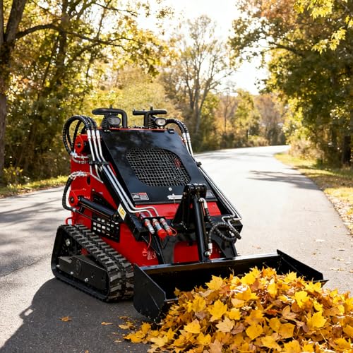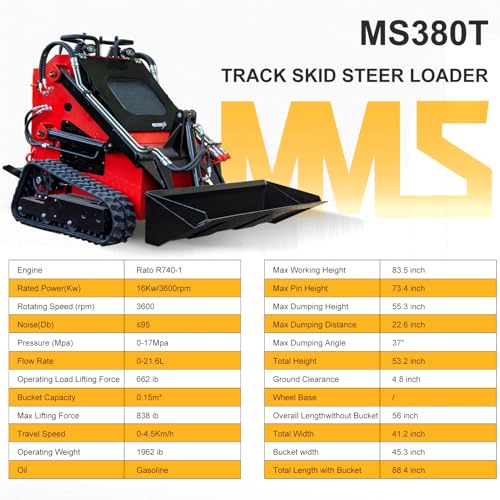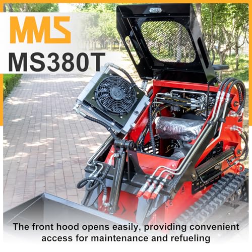 MMS 380T Mini Triangular Track Skid Steer Loader with 23HP Gasoline Engine, 46 inch Bucket Multifunction Stand-On Crawler Skid Steer Machine, Hydraulic Drive Compact Track Loader – In USA Stock