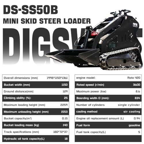 The DigSwift Mini Skid Steer is an exceptional piece of heavy equipment designed for versatile applications. It features a powerful 13.5 HP RATO engine that delivers reliable performance with a maximum lift capacity of 660 lbs, making it suitable for construction, landscaping, and warehouse tasks. Its adaptable design allows for easy attachment changes, including buckets and trenchers, with a shaft spacing of 364mm. Users appreciate its cost-effectiveness and ease of operation, while the manufacturer assures quality without hidden fees. Customer support is readily available for consultation, ensuring you choose the right equipment for your needs.