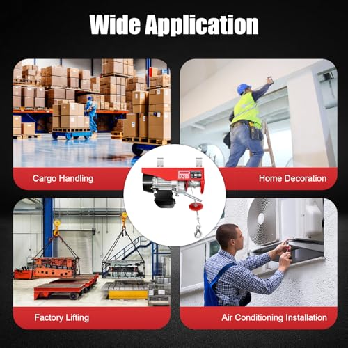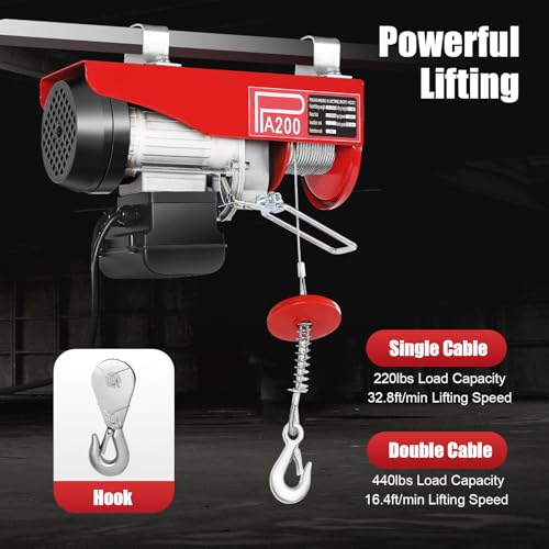 The electric hoist designed for heavy equipment operations combines robustness and durability with advanced features. Constructed with carbon steel stamped housing and strong braided galvanized wires, it ensures a long service life and can handle a load capacity of 220lbs with a single rope and 440lbs with a double rope. Its efficient heat dissipation system, featuring a fan and mesh-type holes, prevents overheating for stable operation, while high-speed bearings maintain performance and minimize noise. Ideal for those needing reliability and strength in trenching applications.