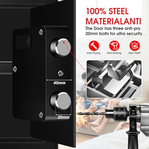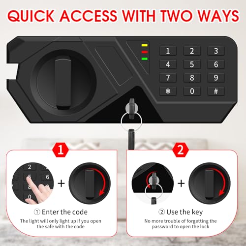 The 1.6 Cuft Safe Box for home use offers a compact size, making it easy to store in various locations while securely protecting your valuables. Constructed from solid steel with pry-resistant features, it provides robust security against unauthorized access. Users can unlock the safe through a digital keypad or a spare key, ensuring accessibility. Additionally, it includes a removable shelf for customizable storage space and a built-in LED light for easy visibility of contents. Ideal for safeguarding important items, this safe combines convenience with security.