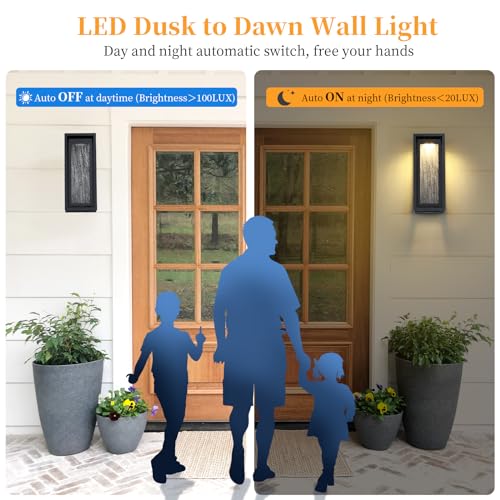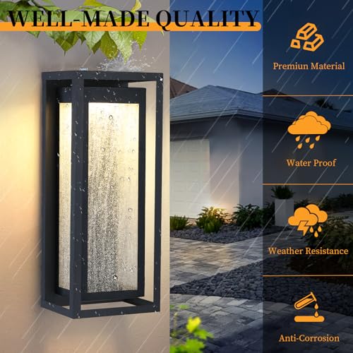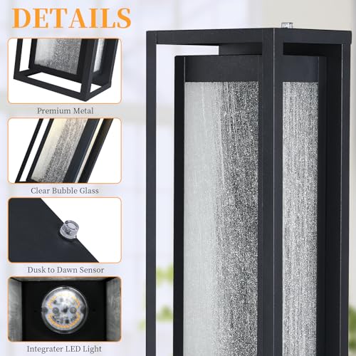 The Dusk to Dawn Outdoor LED Light is a modern and efficient lighting solution, featuring a 13W integrated LED with 1300 lumens of warm 3000K light and a lifespan of over 50,000 hours. The fixture’s sleek bubble glass aesthetic enhances outdoor decor while providing soft illumination. Designed to withstand various weather conditions, it boasts anti-rust and weather resistance, ensuring reliability in rain, snow, or dust. Its size is conveniently measured at 6 inches in length, 4.8 inches in width, and 15.8 inches in height, making it perfect for porches, patios, and entryways.