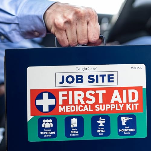 Metal Case First Aid Kit for Job Site & Contractors – OSHA Compliant, Heavy Duty Case for Work Trucks, Fleet, Renovation, Industrial, and Construction- 200 Piece Wall Mount First Aid Kit