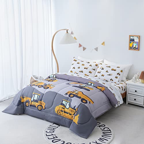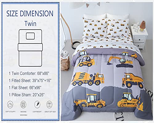 This twin bedding set for kids is crafted from ultra-soft brushed microfiber, ensuring a cozy sleeping experience with its overfilled 200gsm premium filling for warmth and breathability. The fun construction cars design captures children’s imagination and brightens their room. Ideal for gifting, it is also easy to maintain with fade and wrinkle resistance, and machine washable for convenience, making it a perfect choice for both cold and warm days.