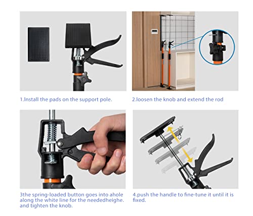 4PK Support Pole, Steel Telescopic Adjustable 3rd Hand Support System, Support Rod, Supports up to 154 lbs Construction Rods for Cabinet Jacks Cargo Bars Drywalls Extends from 49 Inch to 114 Inch